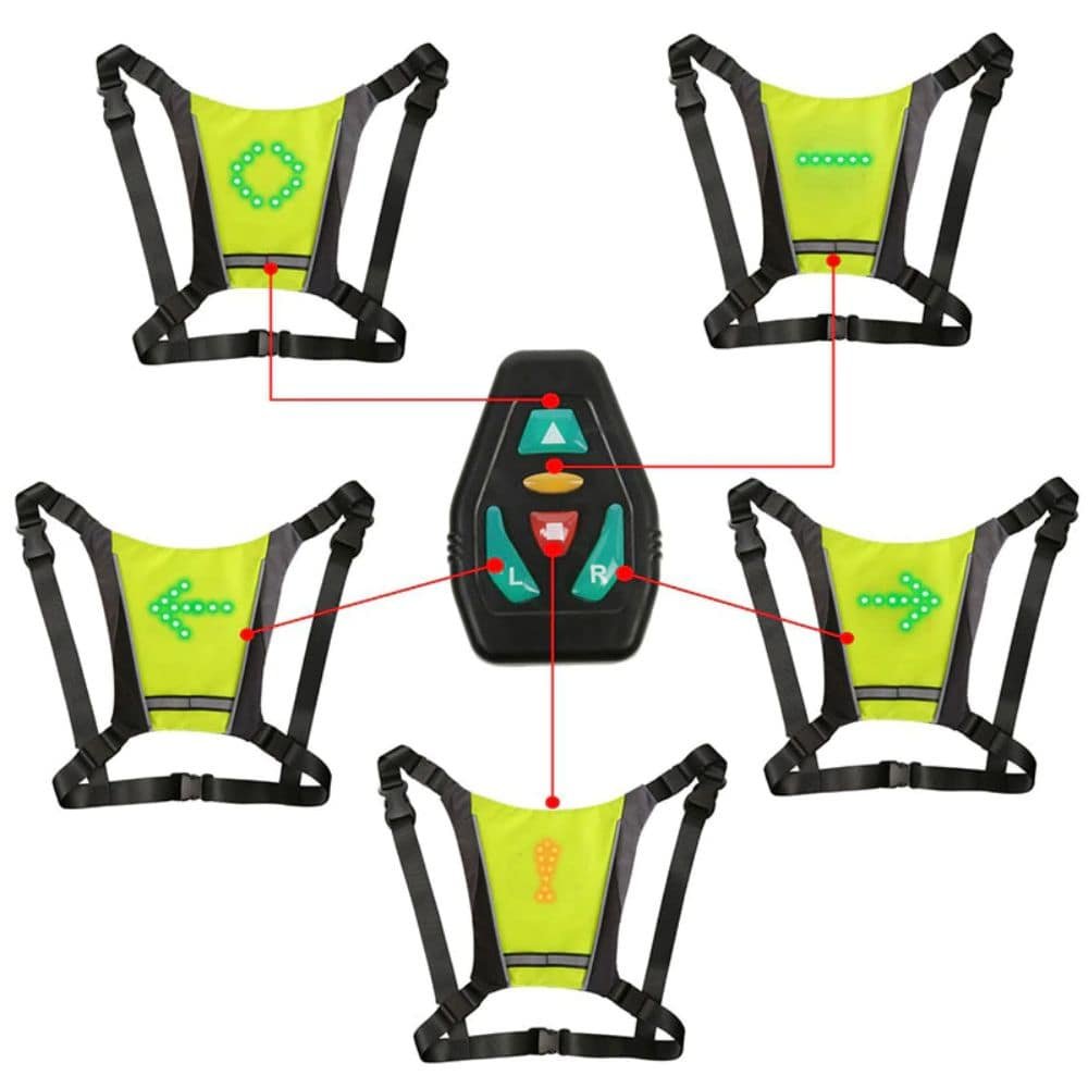 Kamizelka odblaskowa z wbudowanymi kierunkami LED ma regulowany rozmiar i jest idealna dla osób jeżdżących na elektrycznych hulajnogach po zmroku. Kamizelka odblaskowa z kierunkowskazami LED ma wbudowany akumulator o dużej pojemności, który można ładować za pomocą ładowarki USB.