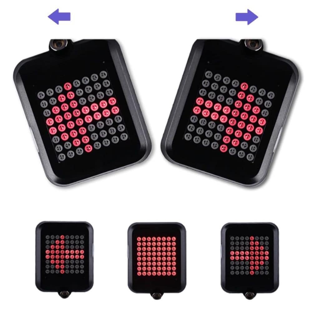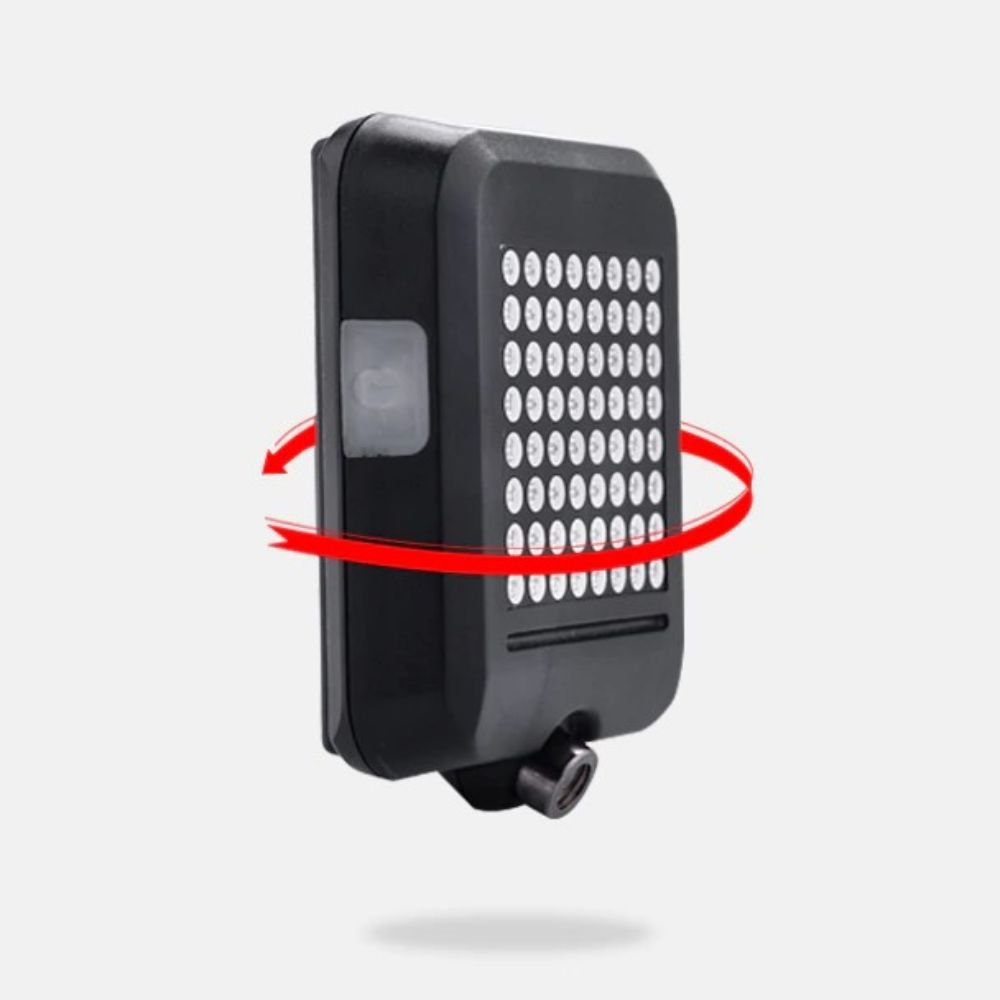 Reflektor LED z 64 jasno świecącymi elementami, automatycznie sygnalizujący hamowanie i kierunek skrętu. Nadaje się do rowerów i hulajnóg. Nie zapominaj: jesteś pełnoprawnym użytkownikiem drogi. Twoje bezpieczeństwo jest zawsze najważniejsze! Lampka z dwoma strzałkami ostrzeże pojazdy jadące za Tobą o zamiarze skrętu lub hamowania. Lampka jest mocowana za pomocą silikonowego paska, jest wodoodporna i można ją przymocować zarówno z przodu, jak i z tyłu hulajnogi.