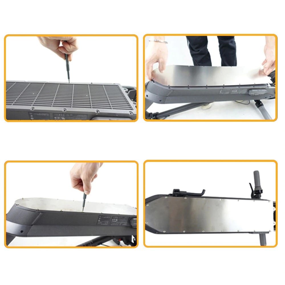 Płyta ochronna podwozia Ninebot MAX G30 cechuje się łatwością instalacji, która nie zajmuje wiele czasu, dzięki dołączonym do zestawu wkrętakom. Stalowa osłona sprawia, że czyszczenie skutera staje się dużo łatwiejsze.